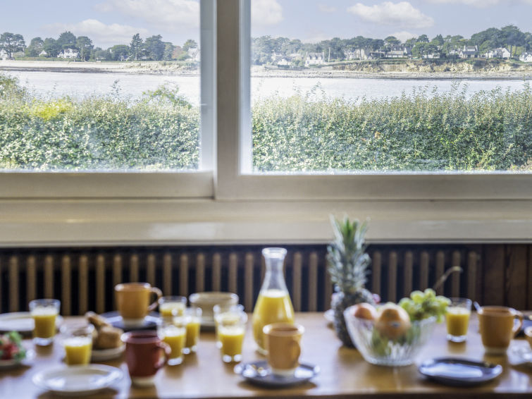 Villa "La Villa Tribale", van 2 verdiepingen. 10 m van zee, 150 m van het strand. Voor alleengebruik: park 2 ha (omheind). Tennisbaan (1 x hard court), parkeerplaats (voor 5 auto's). Supermarkt 3 km, restaurant 2 km, bar 2 km, bakkerij 2 km, café 2 km, zandstrand "Kernevest" 900 m. Jachthaven 1.5 km, golfterrein (18 holes) 12 km, zeilschool 900 m, wandelroutes 10 m vanaf het huis. Attracties in de buurt: La Trinité Sur Mer 2 km, Carnac et ses alignements 7 km, Presqu'île de Quiberon 15 km, Vannes 35 km, Belle ile en Mer, Houat, Hoedic. Wandelgebied Le Golfe du Morbihan 30 km.