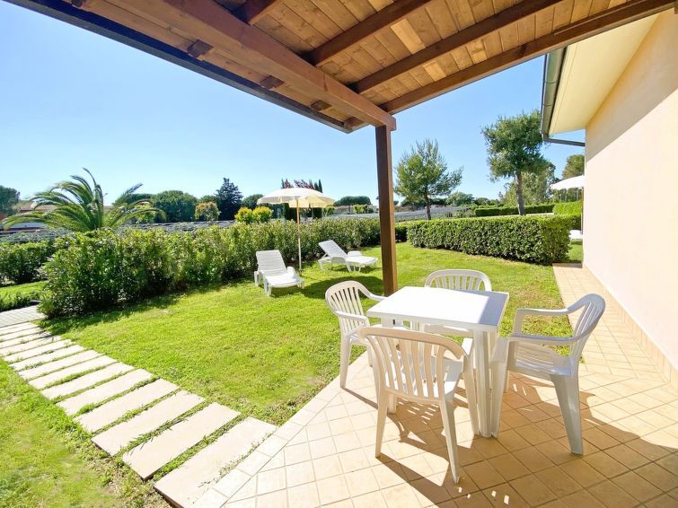 "Grecale", appartement 2-kamers 34 m2. Comfortabel en modern ingericht: woon-/eetkamer met 1 2-pers divanbed en douche/bidet/WC. Uitgang naar de tuin. 1 2-pers. kamer. Kookhoek (magnetron, diepvriezer) met Sat-TV. Air-conditioning. Zithoek in de tuin. Terrasmeubelen, ligstoelen. Ter beschikking: kluis, haardroger. Internet (Internet (WiFi), gratis). Parkeerplaats nr. 1. IT049017A1E5UJE9V7
